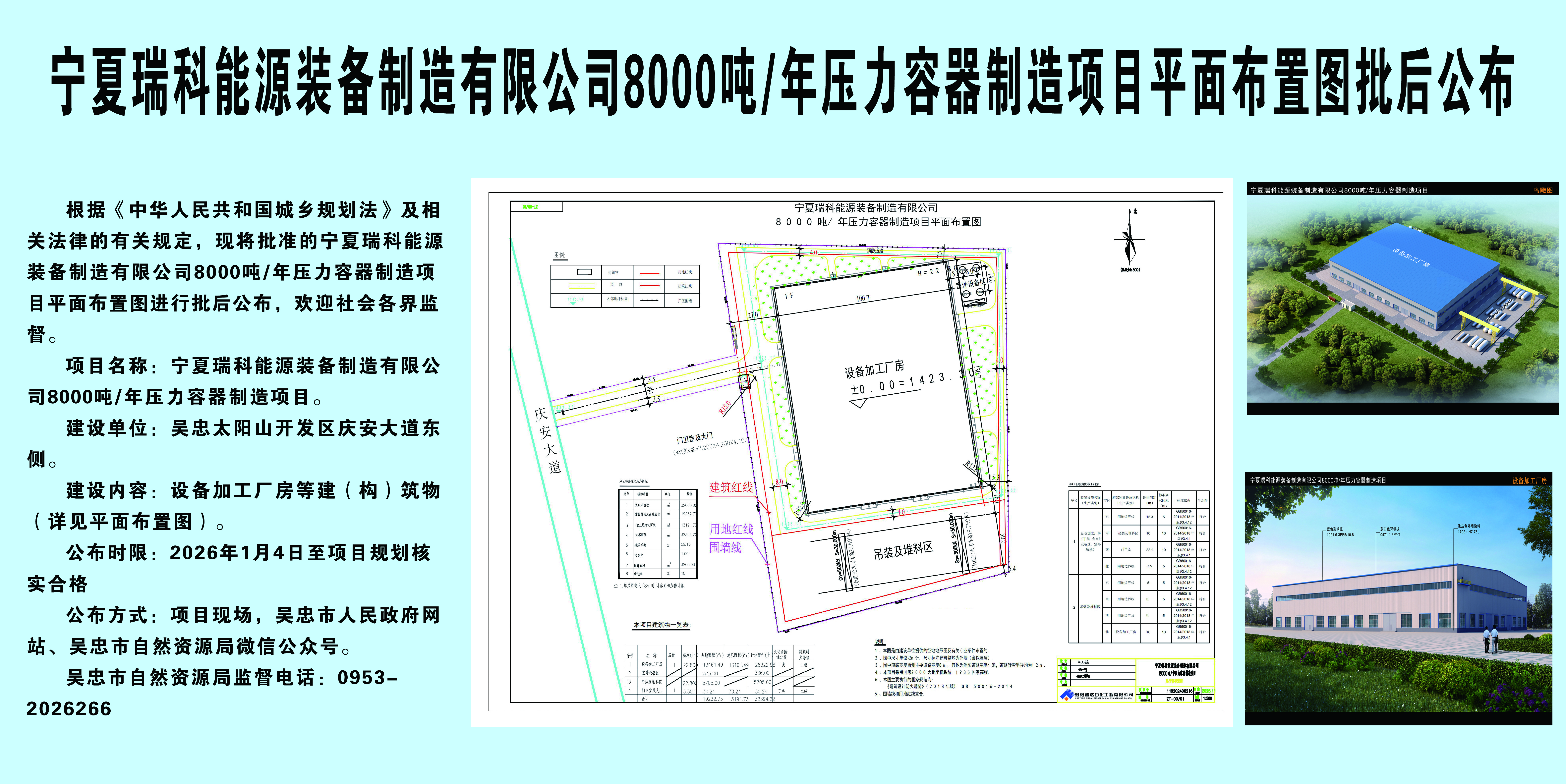 宁夏瑞科能源装备制造有限公司8000吨/年压力容器制造项目平面布置图批后公布
